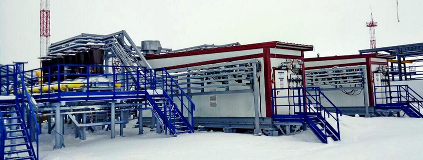 Компрессорные установки в арктическом исполнении спроектированы с учетом экстремальных условий эксплуатации (минимальная температура воздуха – минус 57°C, средняя температура наиболее холодной пятидневки – минус 46°С). Каждая КУ снабжена системами жизнеобеспечения (обогрев, вентиляция, освещение) и безопасности (пожарообнаружение, газодетекция, сигнализация, пожаротушение).