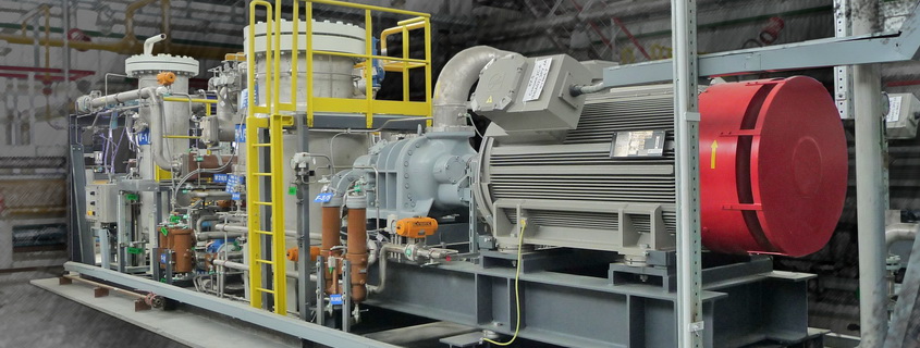 Особым этапом непрерывного процесса газоподготовки является компримирование. Для сжатия газа до необходимого рабочего давления – в целях его транспортировки или подачи в газоиспользующее оборудование – применяются дожимные компрессорные станции, состоящие из одной или нескольких компрессорных установок.