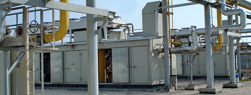 После предварительной подготовки поток газа направляется в дожимную компрессорную станцию. ДКС включает три блочно-модульные компрессорные установки (КУ) винтового типа. КУ единичной производительностью 11 700 м3/ч компримируют газ до необходимого рабочего давления 3,4 МПа и подают его в турбины ПГУ.